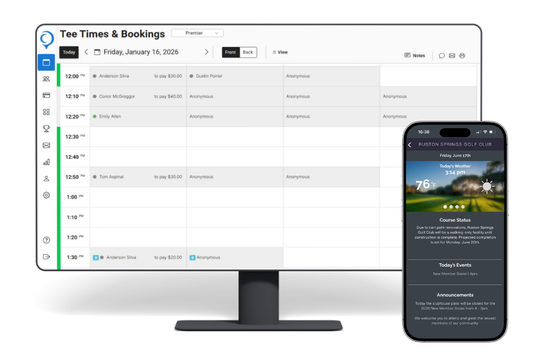 Not adapted or retrofitted. Every workflow is designed specifically for resort golf and club environments, from tee sheet logic to member billing.